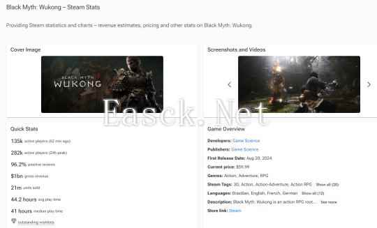 《黑神话:悟空》销量预估突破2100万份!收入破10亿美元