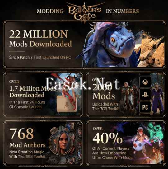 《博德3》7号补丁发布后:Mod下载量达到2200万次!