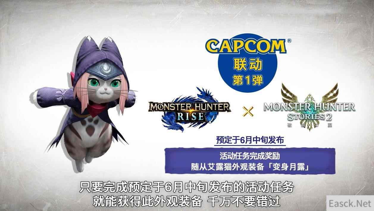 卡普空还将在今后定期为游戏推出免费更新,6月份将举行各种联动活动,首次活动预计于6月中旬进行,可获得破灭之翼中的艾露猫外观装束。