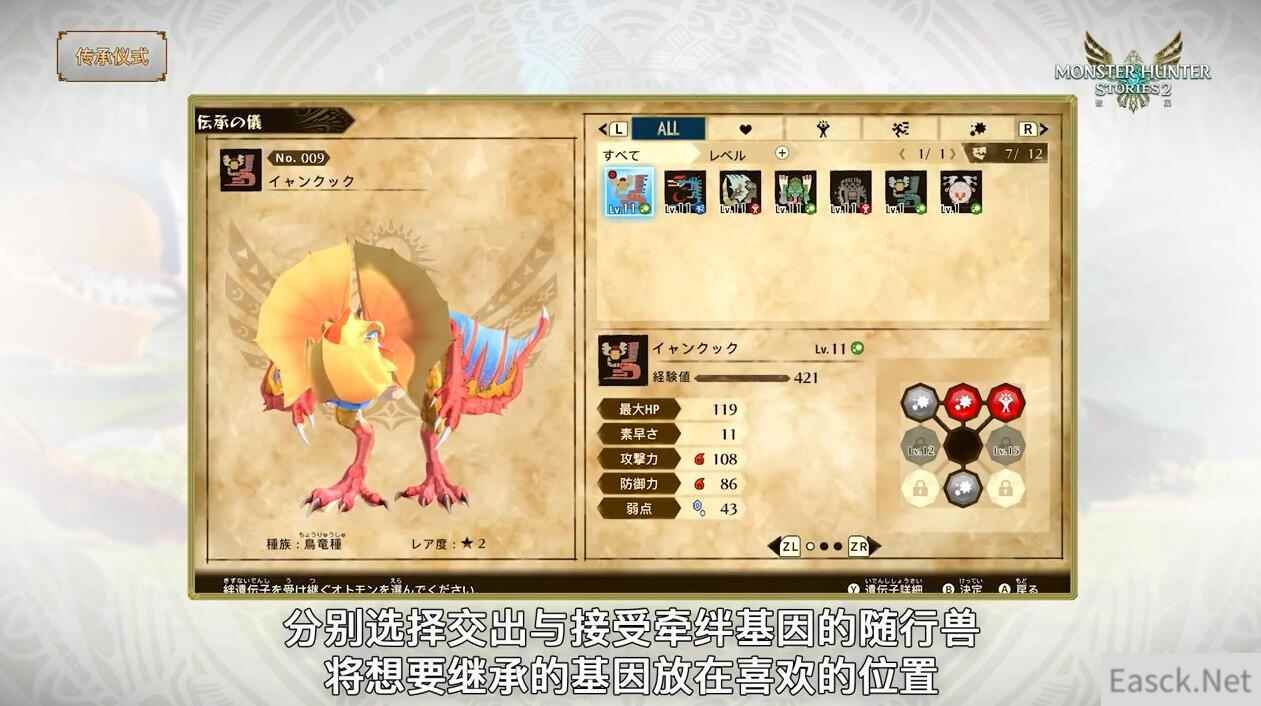 另外官方还介绍了游戏中的传承仪式(选择交出与接受牵绊基因的随行兽,并获得继承基因)以及在怪物巢穴可以获得蛋,包括稀有蛋,然后在兽棚孵化出来怪物,就可以一起冒险。