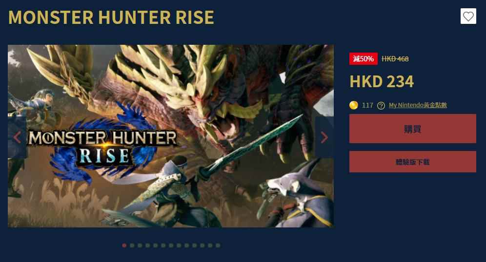 Switch《怪物猎人:崛起》5折新史低 折后价195元