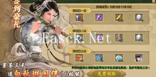 三、新服签到 领白秋琳同伴(6技能) 新服开启,签到打卡不仅可以领取大量的物资奖励,还可额外获得稀有的强力同伴:白秋琳(6技能),伴随大侠开启新的江湖人生!