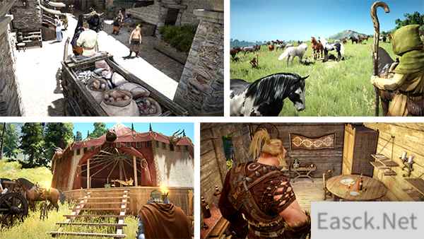 贸易:一开始会背着小包裹开始。赚钱后购买驴子、马匹、巨大的马车可进行有规模的贸易。贸易级别越高,可以通过贸易NPC讨价还价以更高的价格出售物品。