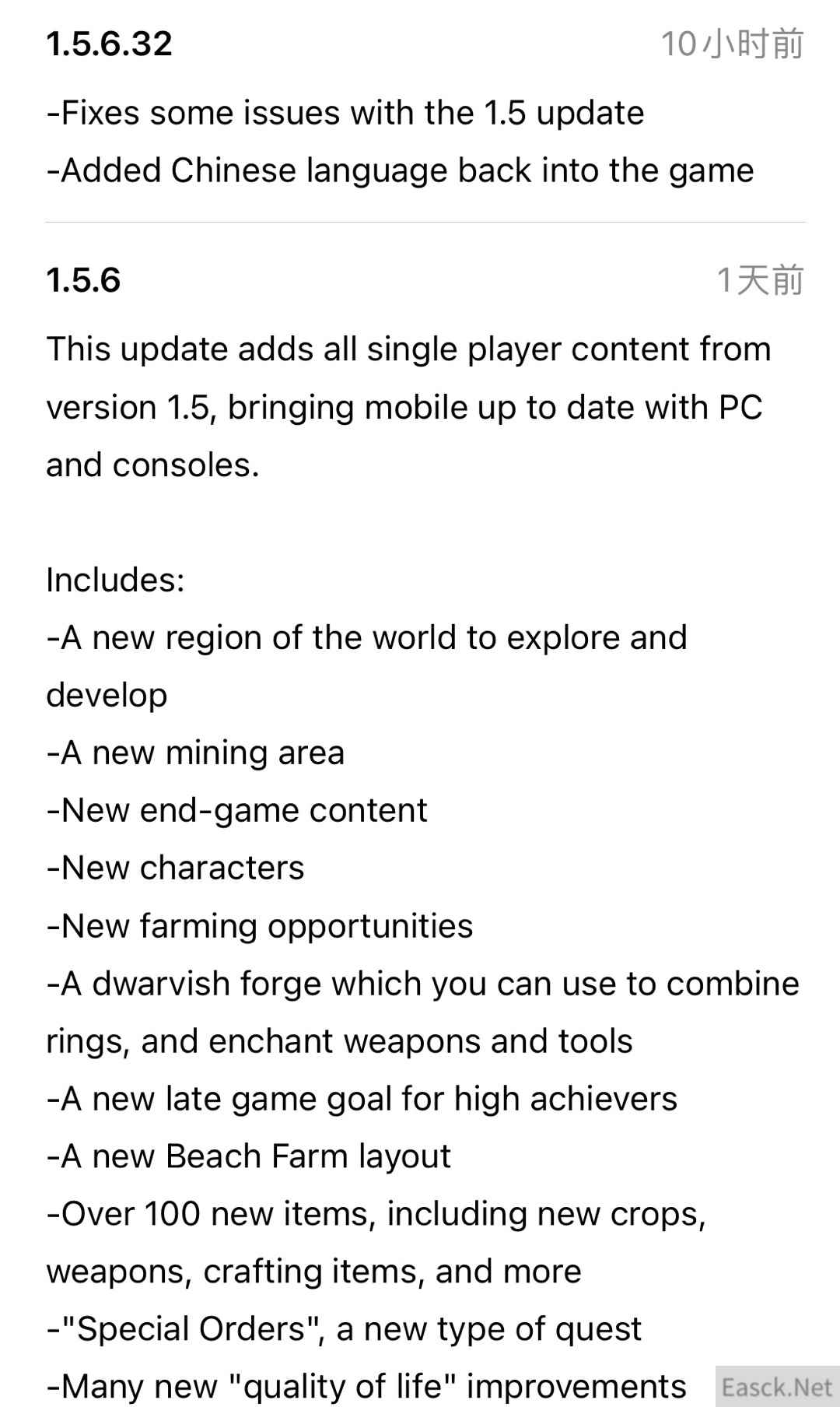 ConcernedApe宣布《星露谷物语》现已在iOS和安卓平台推出1.5更新,此次更新添加了许多内容,使移动设备端与PC和主机平台保持同步。此外,在最新的1.5.6.32版本更新中,游戏添加了对简体中文的支持。