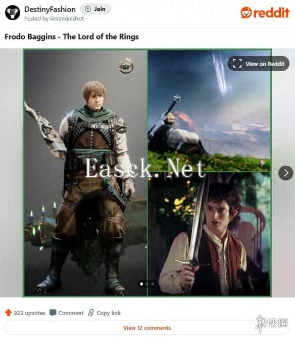 近日,一位名为“iixVanquishxX ”的《命运2》玩家以《指环王》为灵感自制了一款自定义角色装扮,将角色外观设计成了《指环王》的主角弗罗多·巴金斯(Frodo Baggins) 。