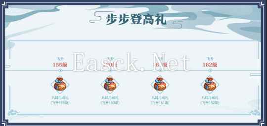 详细规则: 1)所有达到150级的角色都可以免费领取。 2)特别注意:后续活动奖励的领取方式将会有更新和优化,请各位仙友及时关注官方公告! 【步步登高礼】 开服24周内,仙友可以设置4次冲级目标,每次只能设置1个,达到设置的目标后可以领取对应的奖励,请仙友根据自身情况合理进行设置哦。