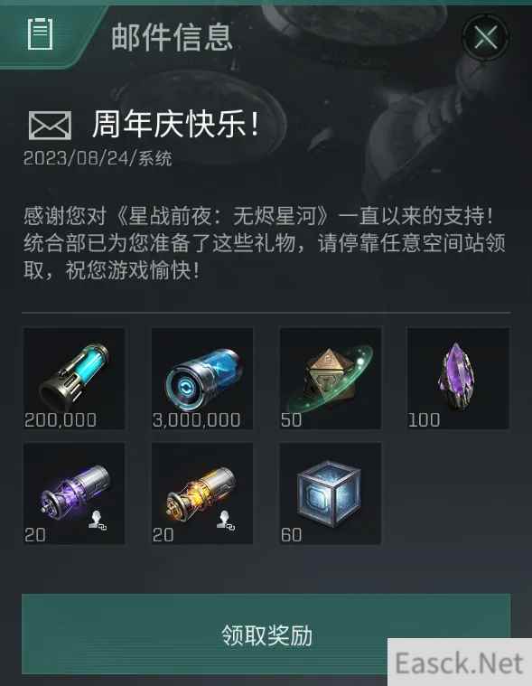 庆典甄选礼包现已送达 为感谢诸位飞行员在过去一年中为新伊甸做出的贡献,统合部特别为所有飞行员精心准备了一份甄选礼包,内含技能重置载体、超立方星核等珍贵道具!现已发放至各位飞行员邮箱中。