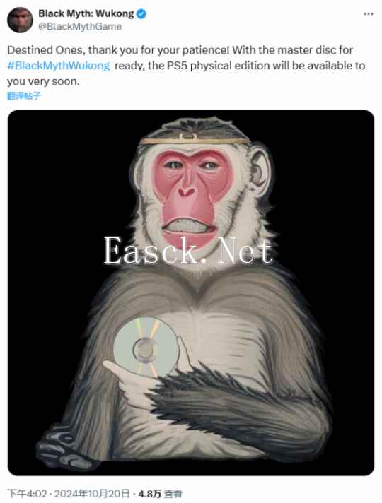 10月20日,《黑神话:悟空》官方正式宣布游戏的PS5实体版已准备就绪,且即将发售。