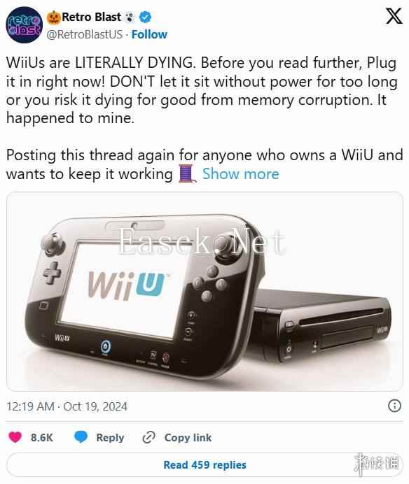 近日,Retro Blast 的一条推文表示,建议用户立即启动 Wii U。据他所说,长时间断电可能会导致内存损坏。尽管其他用户遇到的错误代码各异,但皆指向系统内存问题。