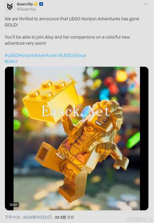 《乐高:地平线冒险》已完成开发进入送厂压盘阶段 11月14日正式发售
