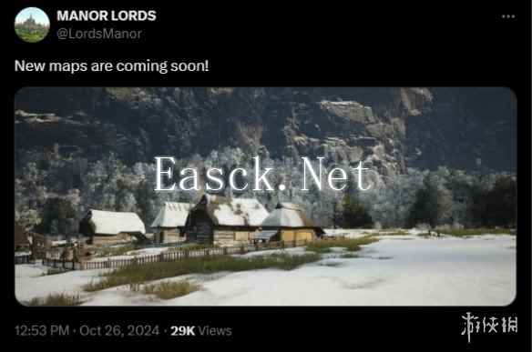 今日,《庄园领主》官方在X上发布推文并配有一张图片:“新地图即将推出!”从图片上来看,地面与屋顶被厚厚的白雪覆盖,而背后是一座高山,难道新的地图是在寒冷之地?这个信息引起许多玩家的好奇与热议。