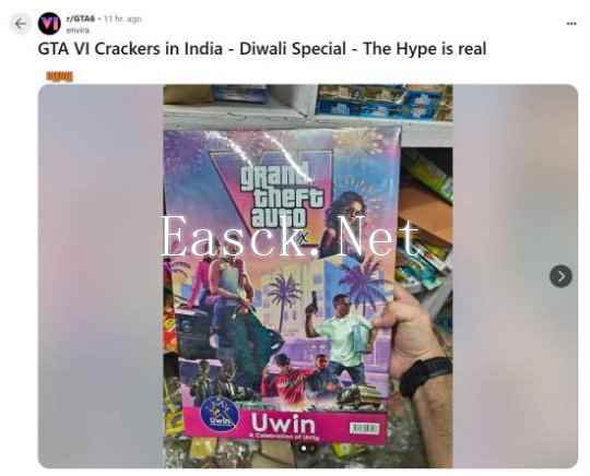 《GTA6》发售日都还没公布,印度人民就已经玩到它的“周边”了。在Reddit上有印度网友发帖,表示排灯节期间自己在当地商店遇到了《GTA6》的礼包“周边”,封面印着《GTA6》的logo和男女主宣传图。