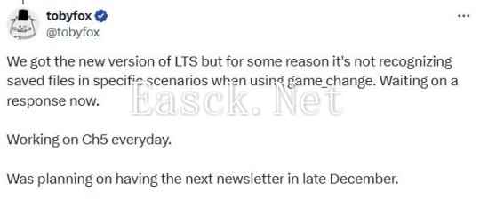 《三角符文》是一款章节式 RPG 游戏,第一章和第二章现已免费发布,登陆了 Switch、PS4 和 PC。未来第三章、第四章和第五章将在开发完毕后一起付费发售。 《三角符文》的作者 Toby Fox 近日再次发文向粉丝介绍该作的开发进度,提到目前游戏的第五章正在全力开发。在上一期的 9 月开发简报中,Toby Fox 曾表示《三角符文》的第三章和第四章内容已经完成,接下来的第五章是团队的开发重点。 Toby Fox 在文中称,他和他的开发团队近日收到了开发引擎 GameMaker LTS 的新版本,但由于某种原因,游戏无法识别已存档的文件,所以他正在等待引擎开发人员的回应。目前,他每天都在开发《三角符文》的第五章,计划在 12 月底发布下一期的开发简报。 更多《三角符文》相关资讯,敬请关注17173。 |