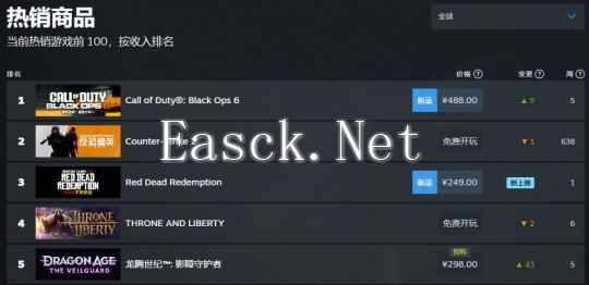 《荒野大镖客:救赎》Steam特别好评 热销榜排名第三