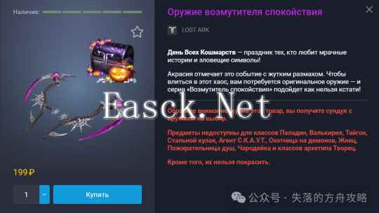 请注意:服装不适用于战士(女性)、武僧(男性)、射手(女性)和创造者原型,武器不适用于圣骑士、女武神、泰贡、钢拳、S.K.A.U.T 特工职业、恶魔猎手、死神。、噬魂者、女巫和造物主原型职业。 采购套要获取套件的内容,请按照说明进行操作。 登录 VK Play交易平台。 https://market.vkplay.ru/ 在“店铺”,选择数量并点击“购买”按钮。在打开的窗口中,将提供各种付款方式。 https://market.vkplay.ru/shop/24/ 转到选项卡“存货”,购买的套装所在的位置。https://market.vkplay.ru/inventory/24/ 单击要领取的设备上的“获取 PIN 码”按钮,然后在出现的窗口中单击“激活”按钮。游戏网站上将开设一个个人帐户,您可以在其中激活促销代码。 https://lostark.ru/promocode 激活促销代码后,商品将出现在“我的物品”,稍后可以将它们转移到游戏中。https://lostark.ru/inventory 如果出现问题,请联系支持服务。https://support.astrum.top/la