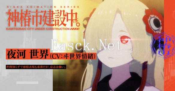 STAFF 原作・企画:KAMITSUBAKI STUDIO / PIEDPIPER 世界观设定・监修・原作剧本:月岛総記 监督・系列构成:柿本広大 角色设计:PALOW. 动画制作:SMDE 制作:SINKA ANIMATION PROJECT 作品简介: 该作是KAMITSUBAKI STUDIO原创IP项目。KAMITSUBAKI STUDIO是来自不同领域才华横溢的创作者们联合创建的艺术家团队。从2019年开始制作中的《神椿市建设中。》,讲述一个探索虚拟城市神椿市隐藏的谜团,恢复城市秩序与和平的故事。主要角色的声优由V.W.P成员担任,以ARG和TRPG为中心开展。 2023年9月宣布正式进军游戏业务。