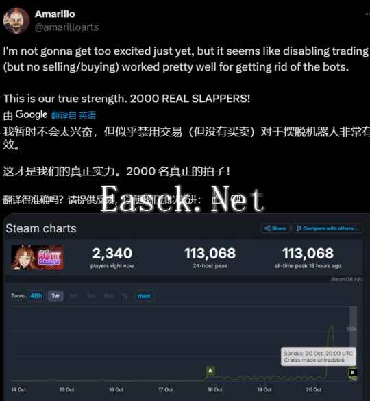 按理来说,游戏这么火对于创作者Amarillo来说是个好事,但他却认为这引来了太多工作室机器人,他们把这游戏当成了牟利的工具,并且拉低了真正玩家(喂什么人会是这游戏的真正玩家啊)开出稀有屁股模型的几率,于是他打算限制交易(因为没有技术清除机器人)。