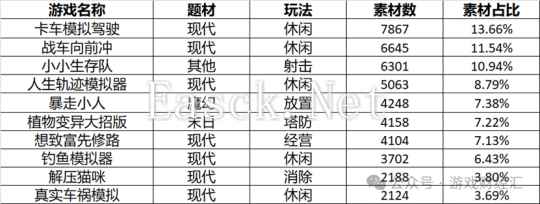 来源:财报;游戏财经汇制图 进入2024年,公司销售费用的增长势头更加迅猛,前三季度累计销售费用达到5809万元,超过了2022年和2023年全年的总额,同比增长183.21%。 具体到每个季度,Q1、Q2和Q3的销售费用分别约为0.13亿元、0.11亿元和0.35亿元,其中Q3的销售费用超过了Q1和Q2的总和,这与实丰网络的投放情况相吻合。 此外,公司的游戏互联网流量费用也水涨船高。2022年该项支出约为300万元,而到了2023年和2024年上半年,这一数字分别增至约2400万和1800万。 对于销售费用的大幅增长,公司解释称,主要系小游戏业务在抖音、微信及快手等平台的流量投放费用增加所致。 (二)头部产品投放情况 实丰网络主要投放了哪些产品? 根据DataEye-ADX的数据,过去90天,实丰网络主投产品包括《卡车模拟驾驶》《战车向前冲》《小小生存队》《人生轨迹模拟器》《暴走小人》《植物变异大招版》等。 从游戏类型来看,实丰网络主投休闲玩法的小游戏,主投产品TOP10中有5款属于休闲玩法;从题材来看,实丰网络主投现代题材。
