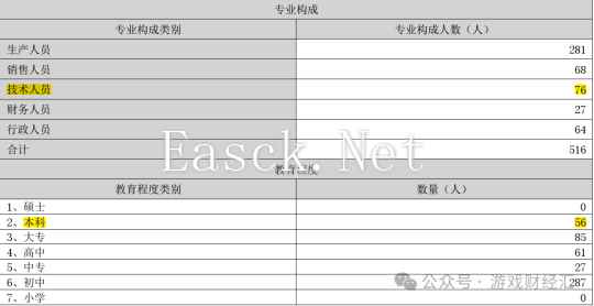 来源:财报;游戏财经汇制图 实丰网络专注于休闲游戏的研发和发行,已经推出了100多款小游戏产品,代表作品包括《生存21天》、《躺平守卫战》、《假如清朝有手机》、《钓鱼模拟器》、《看起来很怪》、《偶像养成计划》等。 值得关注的是,实丰文化在小游戏业务上的投入产出比非常之高。 财报显示,截至2023年底,实丰文化集团的员工总数为516人,其中技术人员仅76人。这意味着实丰网络的研发团队规模可能仅有几十人。 从学历来看,实丰文化集团本科及以上的员工仅56人,占比约10%。