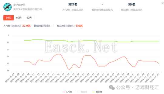 图:近30天《小小庇护所》微信小游戏畅玩榜&人气榜排名;来源:DataEye-ADX 公司另外一款产品《出招吧大侠》,近90天稳居微信小游戏畅玩榜TOP40。
