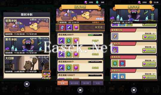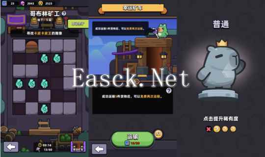 其余玩法大多与《次神·光之觉醒》相似,更多偏向视觉呈现侧产生一定的差异化。其中,如矿工玩法将无限深度的挖矿玩法变成了仙侠等其他类型游戏常见的逐层开箱,挖出通过下一层所需的卡皮雕像通过点击的方式提升获取奖励品质,而连续抽奖则采用《Lucky Defense》的抽奖模式机制。其他玩法内容大多参考其他市场上较为成功的游戏、受到这些游戏玩家认可的子玩法方式如《咸鱼之王》式结算的竞技场机制、《次神·光之觉醒》的副本难度机制等。