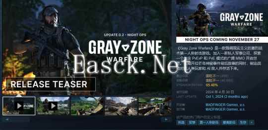 开放世界撤离FPS《灰区战争》夜间行动更新11月27日上线