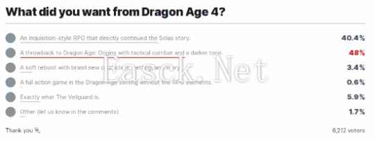 在最近的文章中,IGN发起投票询问玩家对《龙腾世纪4》的期望,6000多名投票者中只有不到6%的人对当前的游戏感到满意。