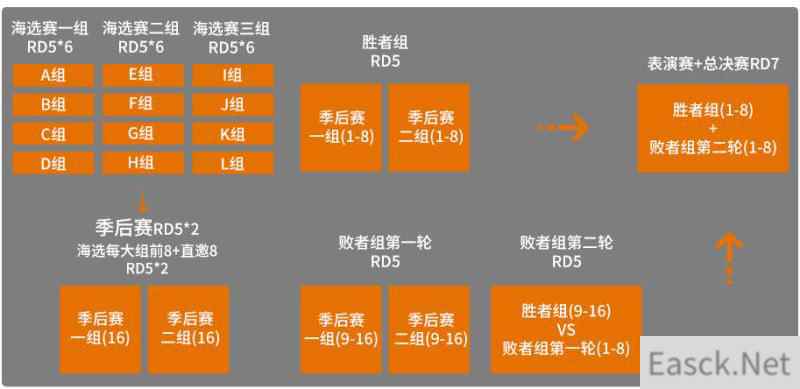 本次比赛分为海选赛(96进24)、季后赛(8支直邀队伍+24支海选队伍),前16名进入决赛。季后赛采取双败淘汰制,胜者组前8名与败者组第二轮前8名共同进入决赛。 【赛程详情】