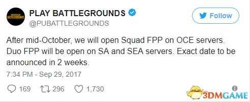 上个月,《绝地求生》已经推出了单排模式下的第一人称模式,现在小队组排也将加入这种模式。 《绝地求生》官方推特:在十月中旬之后,我们会在OCE服务器开启小队组排第一人称模式,双人组排第一人称模式也将会在SA和SEA服务器开启,确切日期将会在未来两周公布。 ![]() 那大家会去体验这种模式么? |