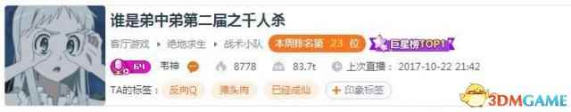 天才选手韦神12小时连播绝地求生“千人斩”再现江湖