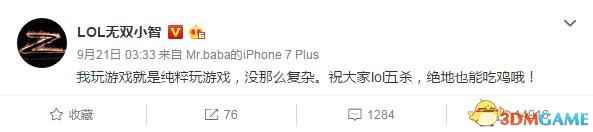小智公开回应:最近确实在玩吃鸡,但玩的是这一款