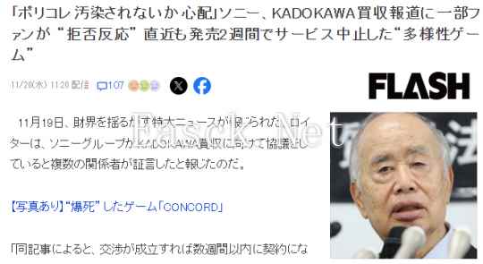 玩家不满索尼或收购角川 担心ZZZQ污染多元化的角川