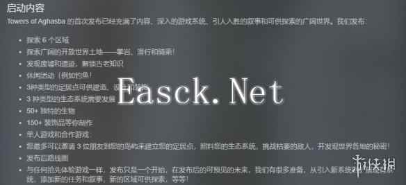 今日,一款开放世界奇幻建造游戏《阿加斯巴之塔》已经推出抢先体验版,而开发团队Dreamlit Games一直都在等待这一天的到来。现在开发团队已经发布了抢先体验路线图的第一个版本,在随着后续的发展与改动,路线图可能会有所改动,但这一切也都在计划当中。 《阿加斯巴之塔》是一个开放世界沙盒游戏,由一个小的团队开发,核心机制主要是玩家能够随心所欲的建造他们的岛屿,这会是一种有趣、奇幻的体验。本次抢先体验含有大量内容,可探索的区域就有6个,还有很多有趣的故事内容与生物。抢先体验只是开始,后续还有更多内容添加进来。 以下是路线图具体内容: 游戏截图: |