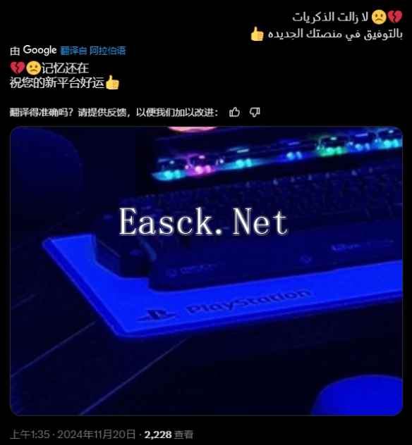 有眼尖的网友发现了图中电脑桌上的PS桌垫,他表示:“那些记忆还留在这里......祝你在新平台好运!”