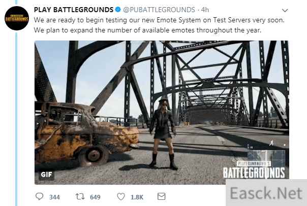 最后《绝地求生》推特还透露,他们计划在年中添加三种新载具,会在今年继续添加新型武器和武器配件。
