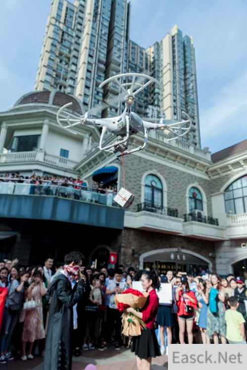 据现场市民爆料,一开始以为是大学生玩街头行为艺术,然后男主的朋友请了好多路人帮忙给女孩子送玫瑰花,现场还用无人机空投了一枚钻戒,才知道是要求婚,这种求婚方式真的很有新意也很浪漫。