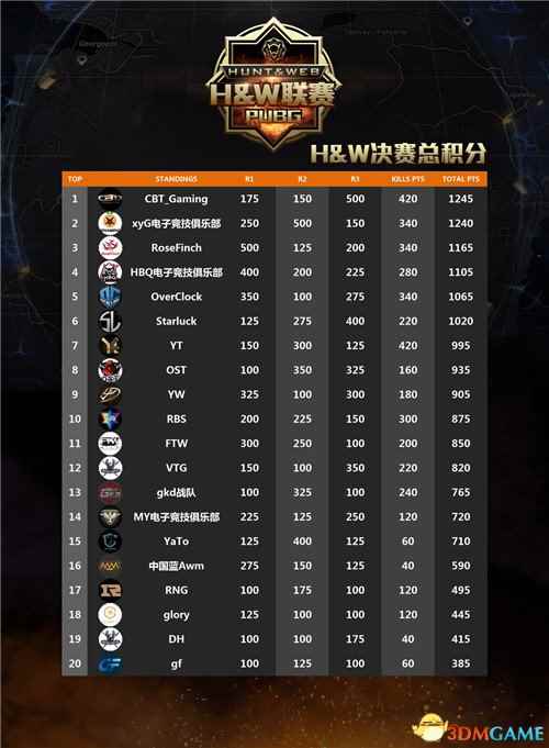 《绝地求生》H&W联赛第一赛季第三轮:黑马CBT夺冠