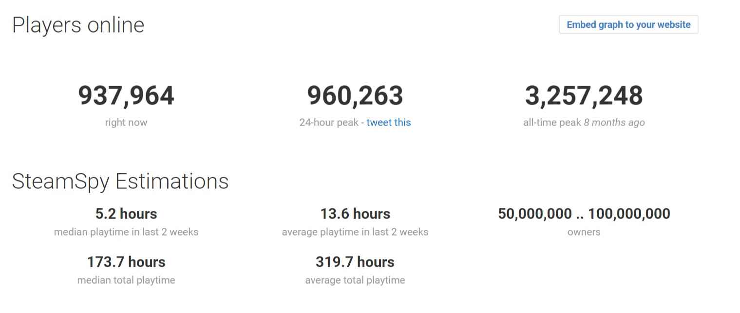 根据SteamDB,昨天是《绝地求生》一年中在线玩家没有达到100万的第一天。巧合的是,这一天恰恰是《使命召唤15》大逃杀模式面向PS4预购玩家公测所开始的一天。