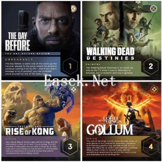 每年有成千上万的新游戏发布,其中绝大部分作品其实都在及格线以下。甚至于一些游戏因为质量太低,而被玩家们所熟知。 去年,IGN就评选过一次游戏界的“卧龙凤雏”。 《浩劫前夕》、《行尸走肉:命运》、《骷髅岛:金刚崛起》、《魔戒:骷髅》,分别被给出了1、2、3、4分的评价。