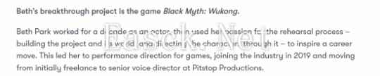 据称,BAFTA是一个相对“学术派”的奖项,它对于游戏的艺术性要求更高也更严格。在对于Beth Park的提名中,BAFTA特别强调,Beth的突破性项目是游戏《黑神话:悟空》。