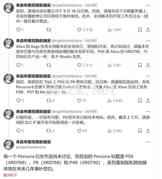 推主Ryan from the Bronx(前化名是Midori)近日发推,他表示《女神异闻录6》不会在今年12月12日举办的TGA大奖上公布,但倒是有可能会在任天堂Switch 2公布活动上亮相。传言称,这还要几个月的时间才能看到任天堂正式公布Switch 2。 他还表示《女神异闻录6》的开发已经进入本地化阶段,这意味着开发进度相当快,内容应该已经完成。 透露的另一个消息是,未来的“DLC扩展”开发已于本月开始。这也表明游戏不再处于内容阶段,而是处于完善阶段。