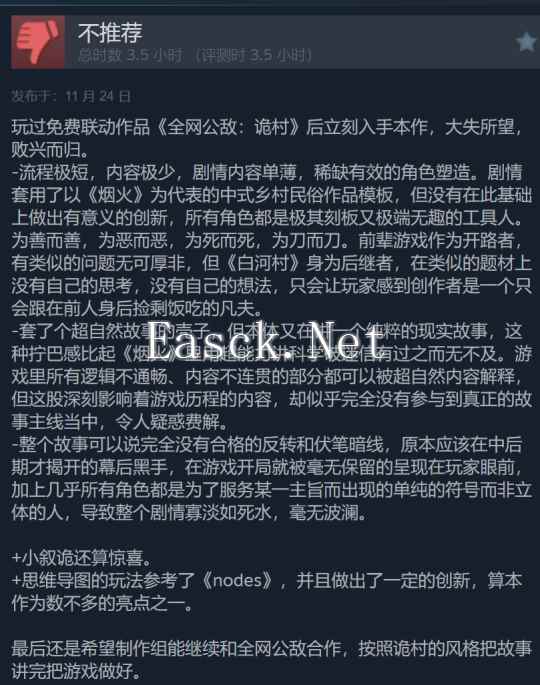 国产心理恐怖《白河村》Steam多半好评 售价38.25元