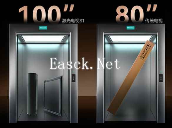 百吋电视如何选? 选购百吋电视面临的第一个问题就是入户难,激光电视的可折叠屏则是一个不错的解决方案。比如2024年热销的海信激光电视星光S1 100英寸采用的就是可折叠的屏幕框架和膜片,轻轻松松入电梯,安装和调试仅需30分钟左右就能完成,并且它的屏幕重量仅为18Kg,上墙完全没有问题,2cm的超薄厚度还能和墙面实现无缝贴合,大大降低了百吋电视的入户和安装门槛。