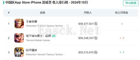 根据七麦数据分析平台统计的10月游戏收入榜单显示,前3名游戏均为腾讯所发行的,总共月收入1.7亿美元以上。腾讯作为吸金大厂每个月手游固定流水都超稳,10月下旬《王者荣耀》举行了9周年庆典,推出了一系列皮肤和福利活动,吸引了大批玩家,10月收入增长了11%。