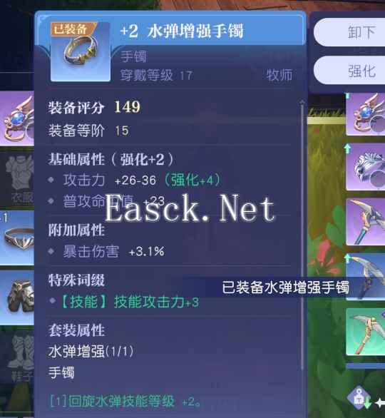 爆出了一个水弹增强手镯?正好就是加我的职业技能,去背包看看详情好了。
