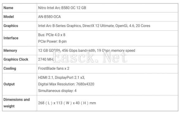 此次发布的两款显卡型号分别为Nitro Intel Arc B570 OC 10GB(AN-B570-OCD)和Nitro Intel Arc B580 OC 12GB(AN-B580-OCA)。其中,最高时钟频率可达到2,740 MHz,内存最大支持12GB GDDR6规格,为用户提供逼真的游戏体验。同时,新显卡还支持借助Intel AI Playground应用程序,让玩家和创作者能够体验到更智能的AI功能。这些显卡还搭载了宏碁的FrostBlade散热系统,以确保长时间运行下的稳定性能。 性能突破:提供极致游戏与视觉体验 Nitro Intel Arc B系列显卡整体基于最新的Xe2架构设计,采用高达20个着色核心,性能相较上一代实现50%的大幅跃升。无论是Nitro Intel Arc B570 OC的2,690MHz还是Nitro Intel Arc B580 OC的2,740MHz频率,都能够为玩家在1440p高帧率游戏和最多8K画质的内容创作中带来流畅无阻的体验。不仅如此,Intel Xe 低延迟技术(XeLL)还能有效减少玩家操作输入延迟,确保快速响应。