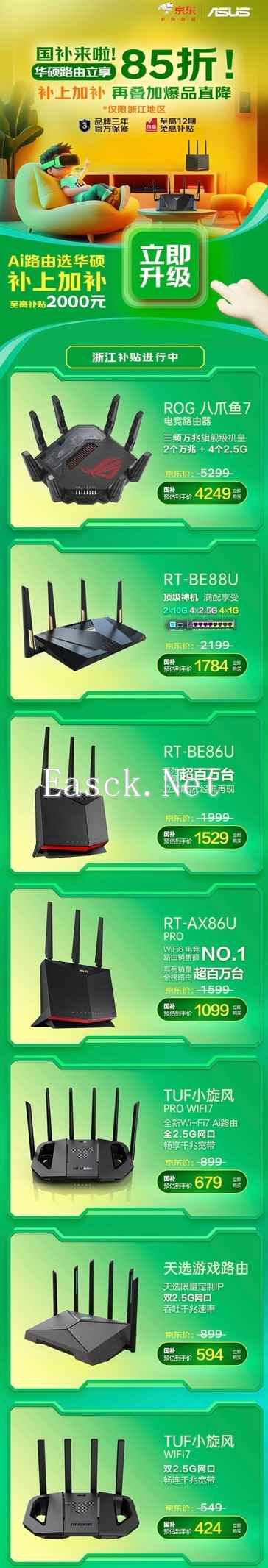 浙江专享!华硕路由国补大促低至85折,抢购倒计时!