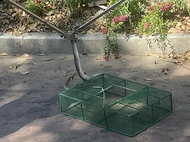 发现毒蛇后,该市民迅速退至安全地带并拨打报警电话求助。消防队员和警辅人员迅速抵达现场,在确保自身安全的前提下,采取敲打石头的策略试图将眼镜王蛇引出。经确认,该毒蛇正是一条长约90厘米、体型庞大且毒性极强的眼镜王蛇。