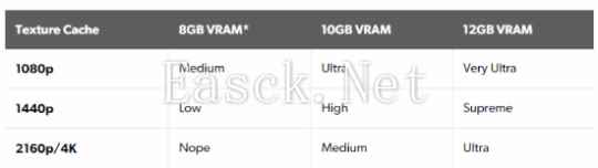 媒体指出PC版《夺宝奇兵:古老之圈》给人第一印象相当完美,游戏没有出现着色器编译卡顿,也没有影响流畅度的动作延迟。PC版中最低画面预设下的效果也很自然,而相比之下,Xbox上的低设置虽然能提升性能,但实际上可能会影响画面质量。 游戏中显卡的显存分配尤为重要,因为游戏似乎是围绕12GB显存基准构建的,因此,拥有8GB或10GB显存的显卡可能会遇到纹理缓存设置的问题。例如,在1440p分辨率下,RTX 3080(10GB显存)无法使用超高纹理缓存选项以避免出现性能大幅下降,而8GB显存的用户可能会遇到更严重的问题。 媒体表示,玩家可以通过调整设置来避免显存不足的影响。例如,游戏会优先处理靠近玩家的纹理,缓存越大,可以使用的纹理缓存设置就越高。设置越高,在任何给定场景中呈现的高细节艺术效果就越远。根据这一原理,数毛社分享了一份设置建议,其推荐不同显存可根据表格中对应的设置进行选择。媒体还表示,不建议在任何分辨率下使用高于“中等”的阴影设置,因为这也会影响显存的利用率,同时也不建议使用高于“低”预设的发丝质量,以保持最佳性能。