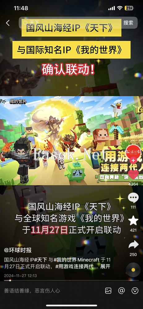虽然本次联动道具全免费,并不能为《天下》项目组带来营收,但通过本次活动,让游戏内的《山海经》文化,走出国门并吸引到广大的青少年的注意和喜爱,这对于项目组而言就已经是一笔意义非凡的收获。 “让更多年轻人加入天下,重要的是先迈出去”,天下项目组认为游戏出海不仅仅是游戏产品在海外发行上市,更重要的是产品中的文化内核,亦能随之扬帆远航,成为展示中华文化的一个窗口。这一个个像素方块搭建起来的,不仅仅是亭台楼阁,高山流水,更是一座国际文化交流的桥梁,在网络上开辟了一条让中华文明走出的丝绸之路。 让我们共同期待更多的游戏产品也能承载起文化传承的担子,载着中华文化瑰宝,扬帆远航! |
